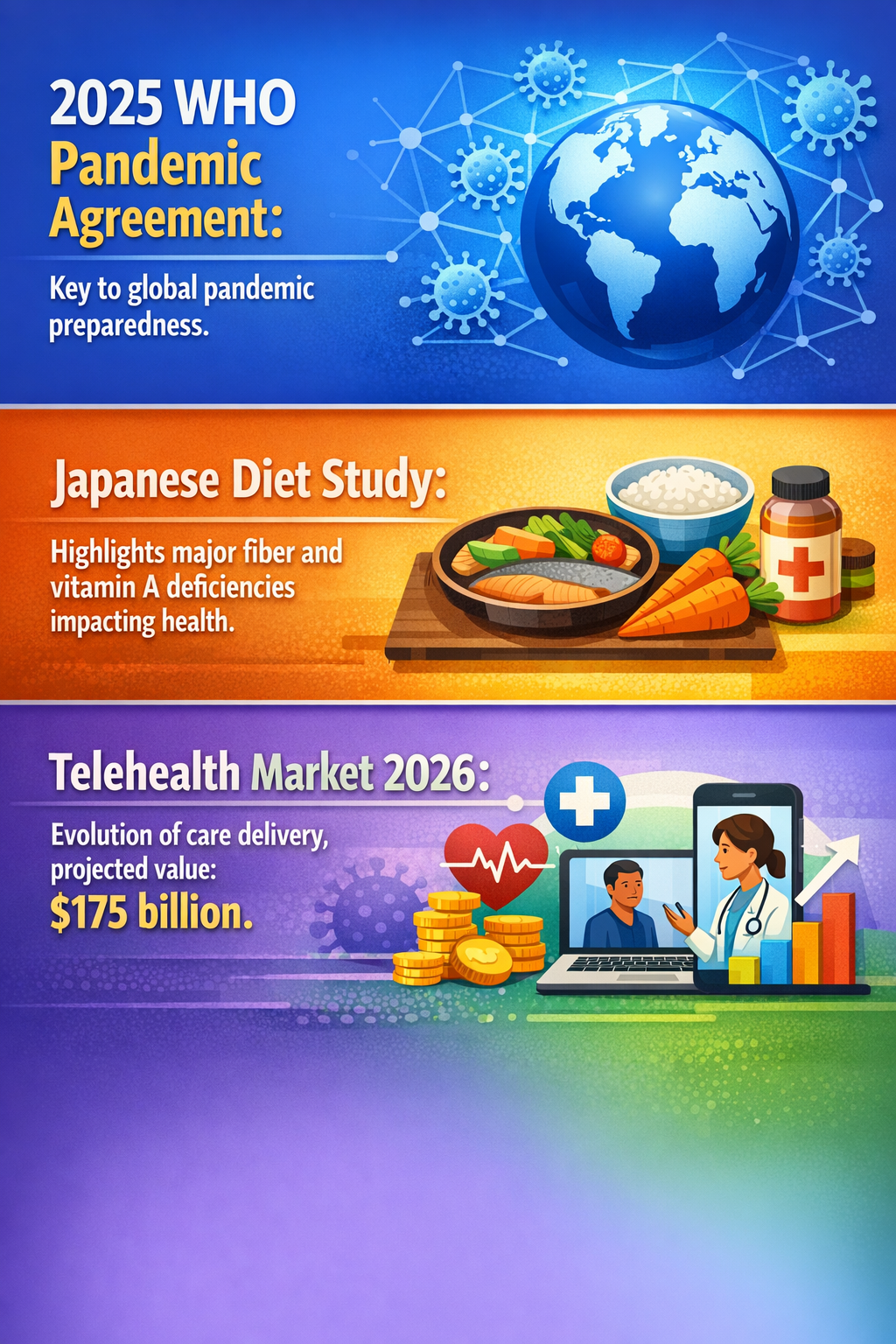 Last, but not least, dietary and public health research highlights emerging gaps in nutritional intake linked with chronic risk factors, such as fiber and vitamin A deficiencies identified in Japanese adult populations (Food Ingredients First, 2024). Such insights may point toward novel public health strategies and telehealth-enabled interventions focusing on lifestyle and preventive care, which could be integrated into digital health offerings over the next decade.