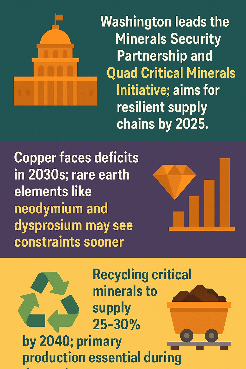 Recycling technologies for critical minerals are poised for rapid advancements, potentially providing a significant secondary source in the next two decades. However, even optimistic projections suggest recycling will still not fully replace primary mineral extraction during peak demand phases (DiscoveryAlert, 2025).