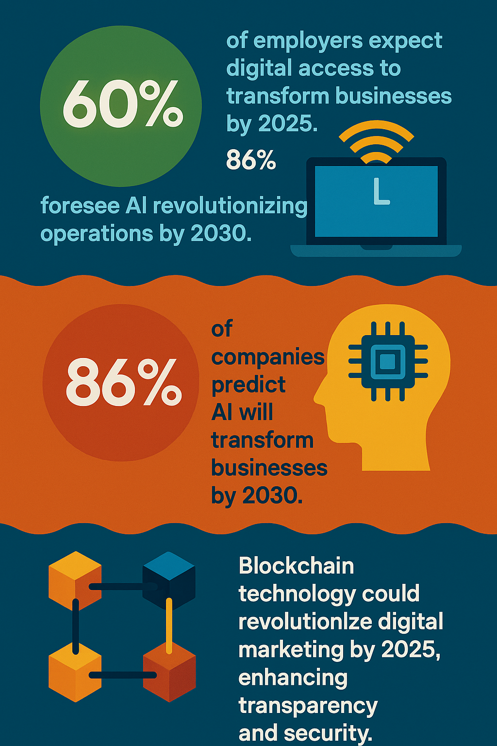 Blockchain’s impact on digital marketing: Blockchain may increase transparency and security in digital marketing, potentially redefining trust mechanisms by 2025 (Alloy Marketing).