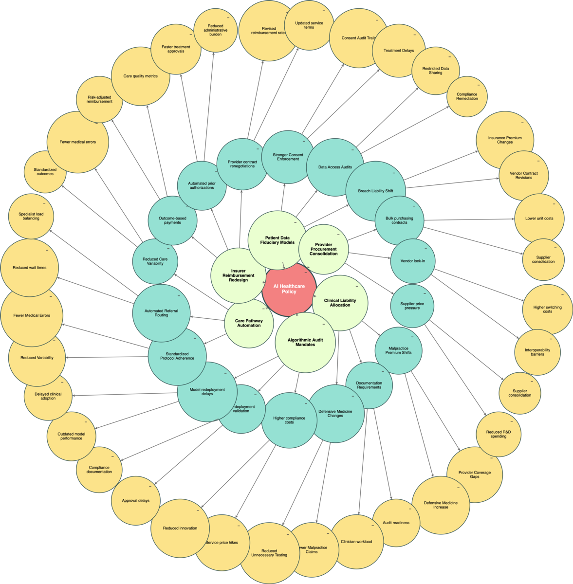 The radial structure shows how first-order effects trigger second - and third-order consequences that are easy to miss in linear analysis.